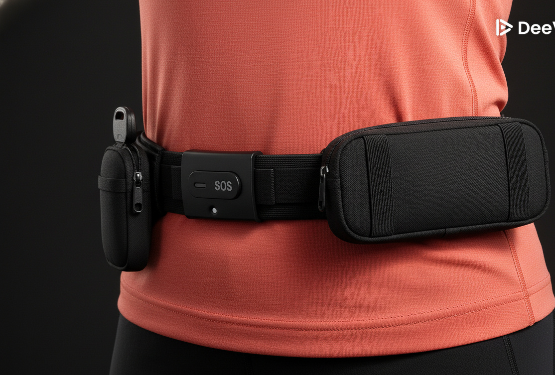 Produit créant un sentiment de sérénité dans la pratique sportive. La ceinture de sport multifonctions permet d'emporter son petit matériel tout en étant équipé d'un système de sécurité intégré :